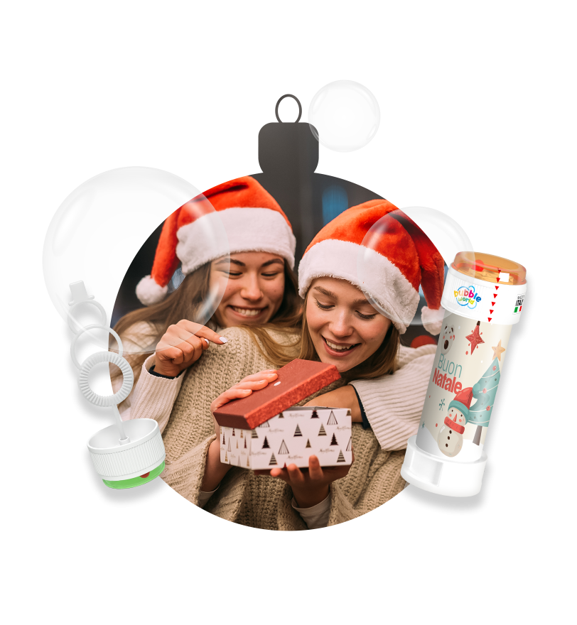 Le bolle di sapone personalizzate sono un regalo di Natale versatile, perfetto per ogni contesto: per le aziende e i brand che vogliono distinguersi con un gadget natalizio creativo e di qualità; per gli eventi e le cene di Natale, dove le bolle di sapone aggiungono atmosfera e divertimento; per amici e famiglie che vogliono condividere un gesto leggero, allegro e pieno di significato.
